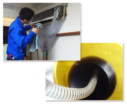専用の機材によって、中の中まで綺麗にでき、通常は洗浄できないパイプなどの中まで洗浄・殺菌します。